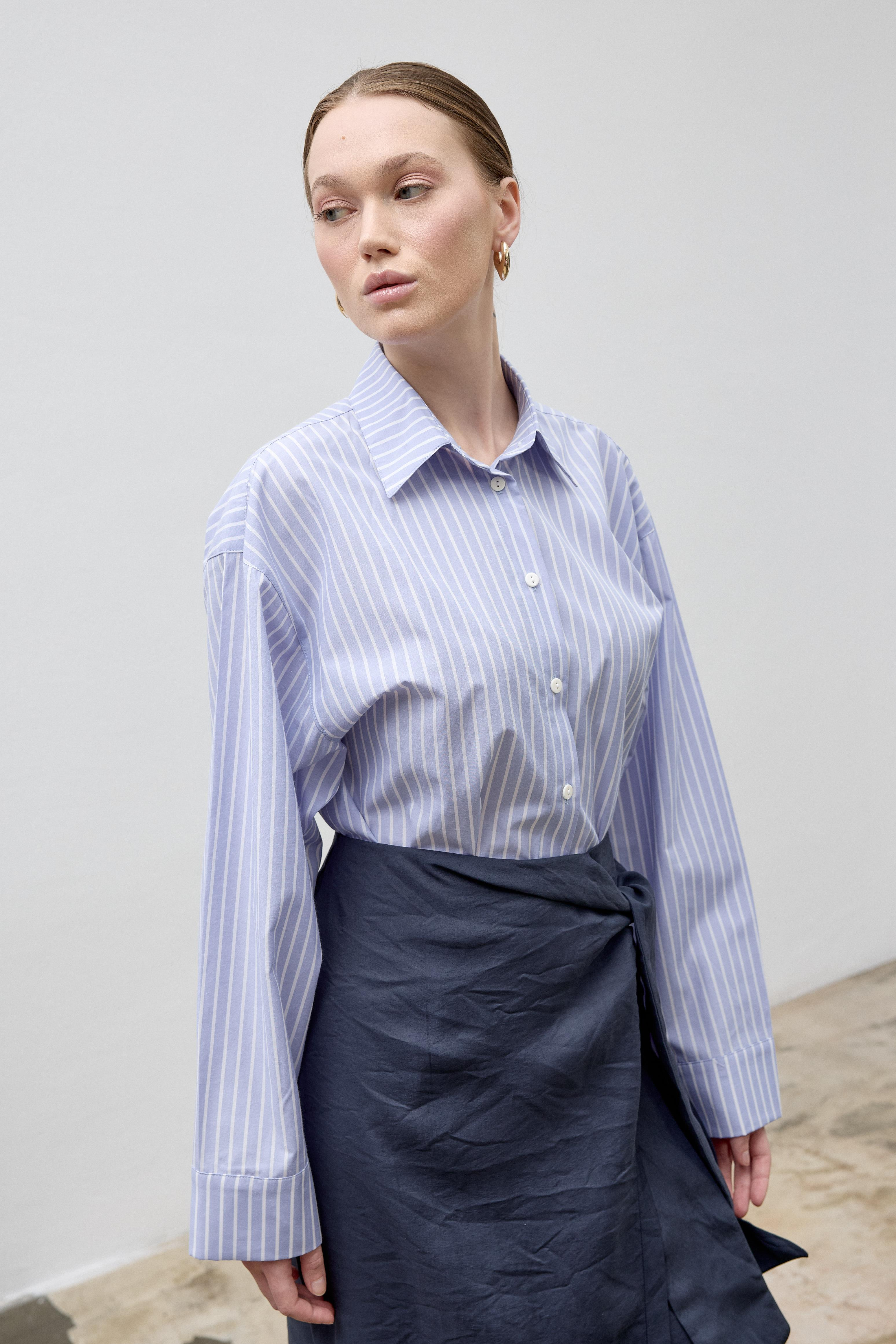 Oversize kesimiyle vücuda ferah bir siluet kazandıran bu pamuklu gömlek, ayarlanabilir bel düğmesi detayıyla isteğe göre form kazandırılabilir. Doğal pamuklu kumaşı sayesinde nefes alır, yumuşak dokusuyla gün boyu konfor sunar.