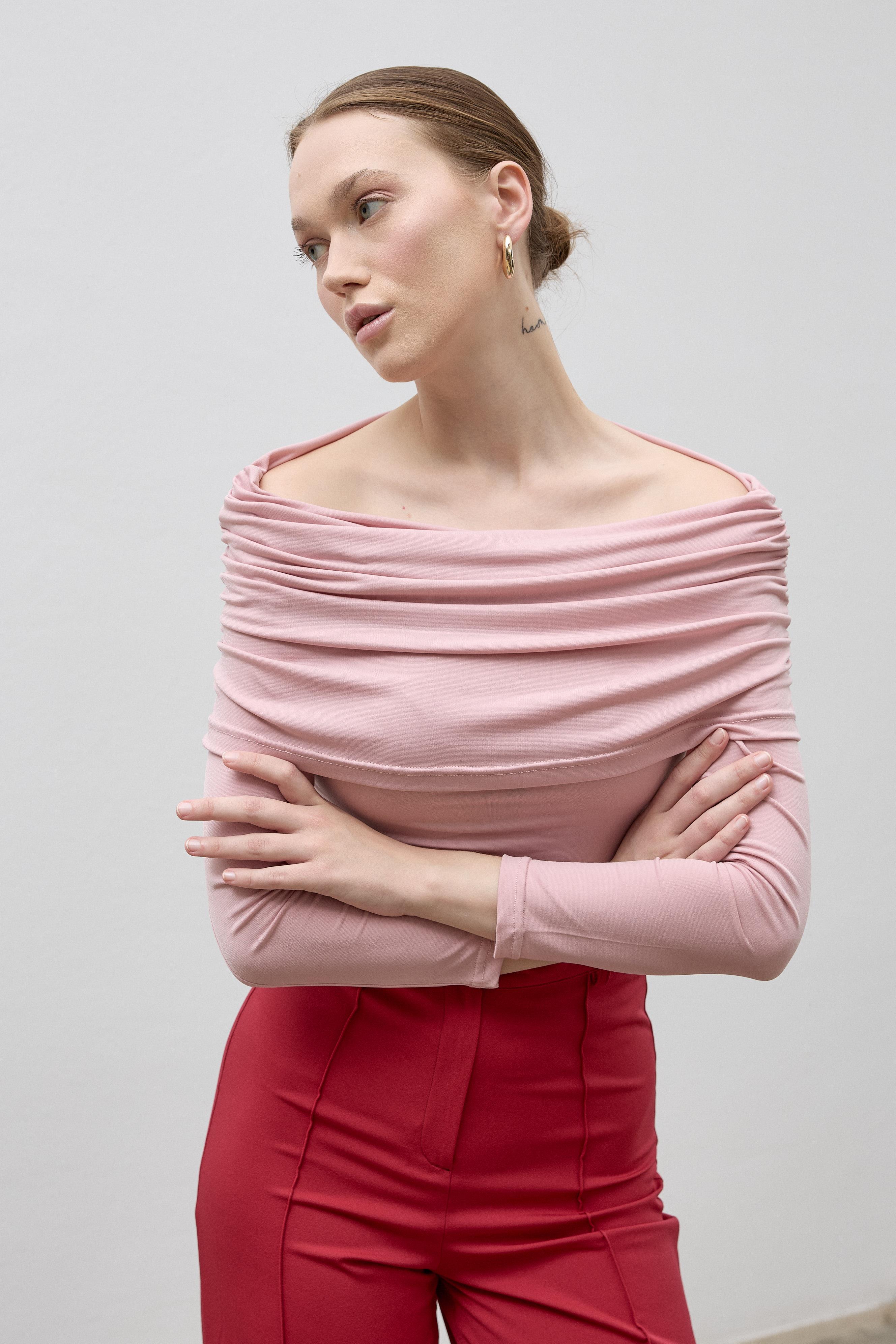 Kayık yaka esnek kumaş Amaris bluz, yumuşak dokulu ve vücuda uyum sağlayan elastik yapısıyla günün her anında konfor sunar. Omuzları zarifçe vurgulayan kayık yaka formu, hem gündüz hem akşam kombinleri için ideal bir seçimdir.