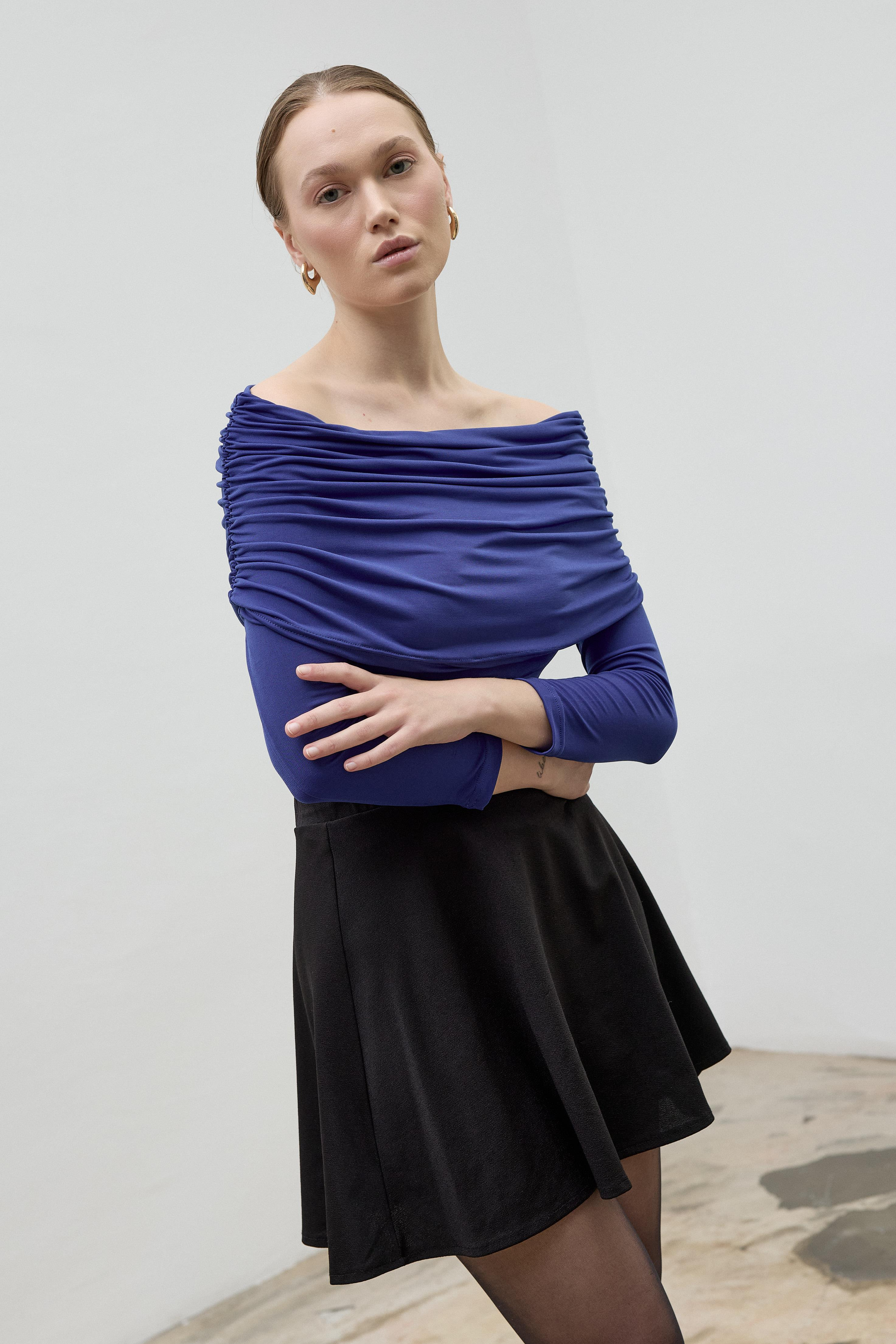Kayık yaka esnek kumaş Amaris bluz, yumuşak dokulu ve vücuda uyum sağlayan elastik yapısıyla günün her anında konfor sunar. Omuzları zarifçe vurgulayan kayık yaka formu, hem gündüz hem akşam kombinleri için ideal bir seçimdir.