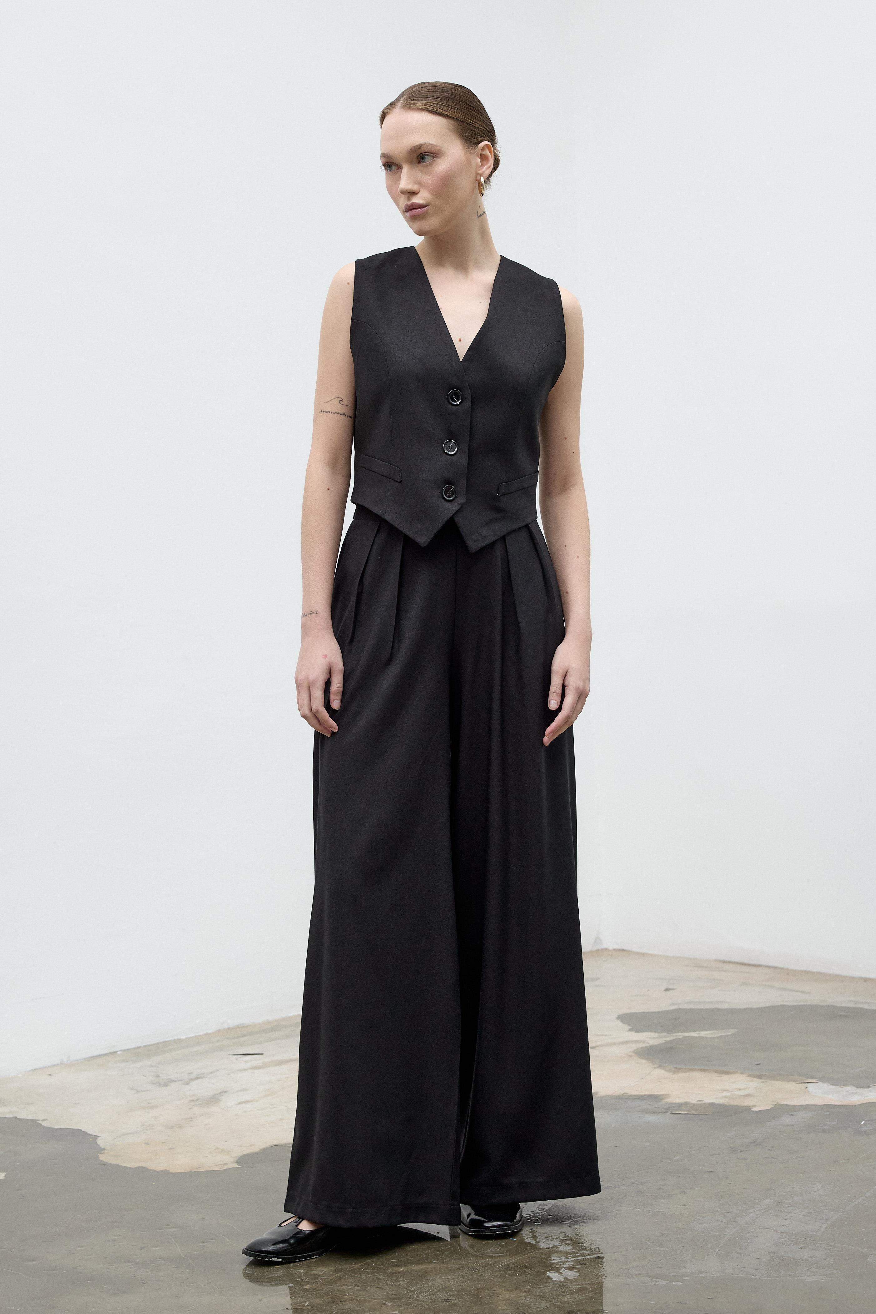 Krep kumaştan üretilen bu yelek, klasik kesimi sayesinde her stile uyum sağlar ve şıklığınızı tamamlar. Hafif ve dökümlü yapısı ile rahat bir kullanım sunarken, minimal tasarımı sayesinde hem iş ortamında hem de özel davetlerde kolayca kombinlenebilir. Gardırobunuzun zamansız parçalarından biri olarak öne çıkar.