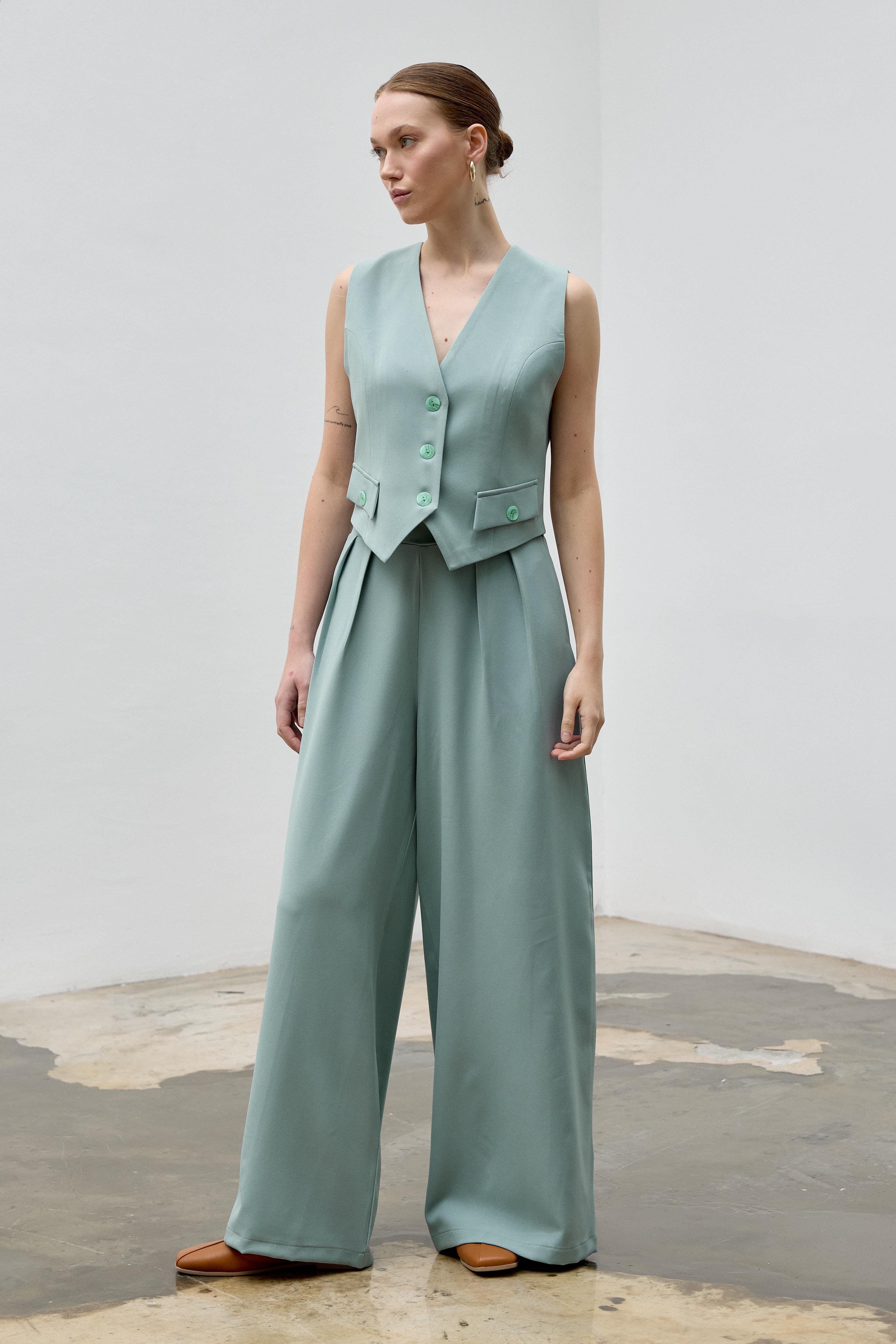 Krep kumaştan üretilen yelek ve pantolon, klasik kesimi sayesinde her stile uyum sağlar ve şıklığınızı tamamlar. Yeleğin hafif ve tam kalıp yapısı ile pantolonun rahat kesimi gün boyu konfor sunarken, minimal tasarımı sayesinde hem iş ortamında hem de özel davetlerde kolayca kombinlenebilir. Takım olarak kullanıldığında uyumlu ve sofistike bir stil yaratır; parçalar ayrı ayrı da farklı kombinlerde değerlendirilebilir.