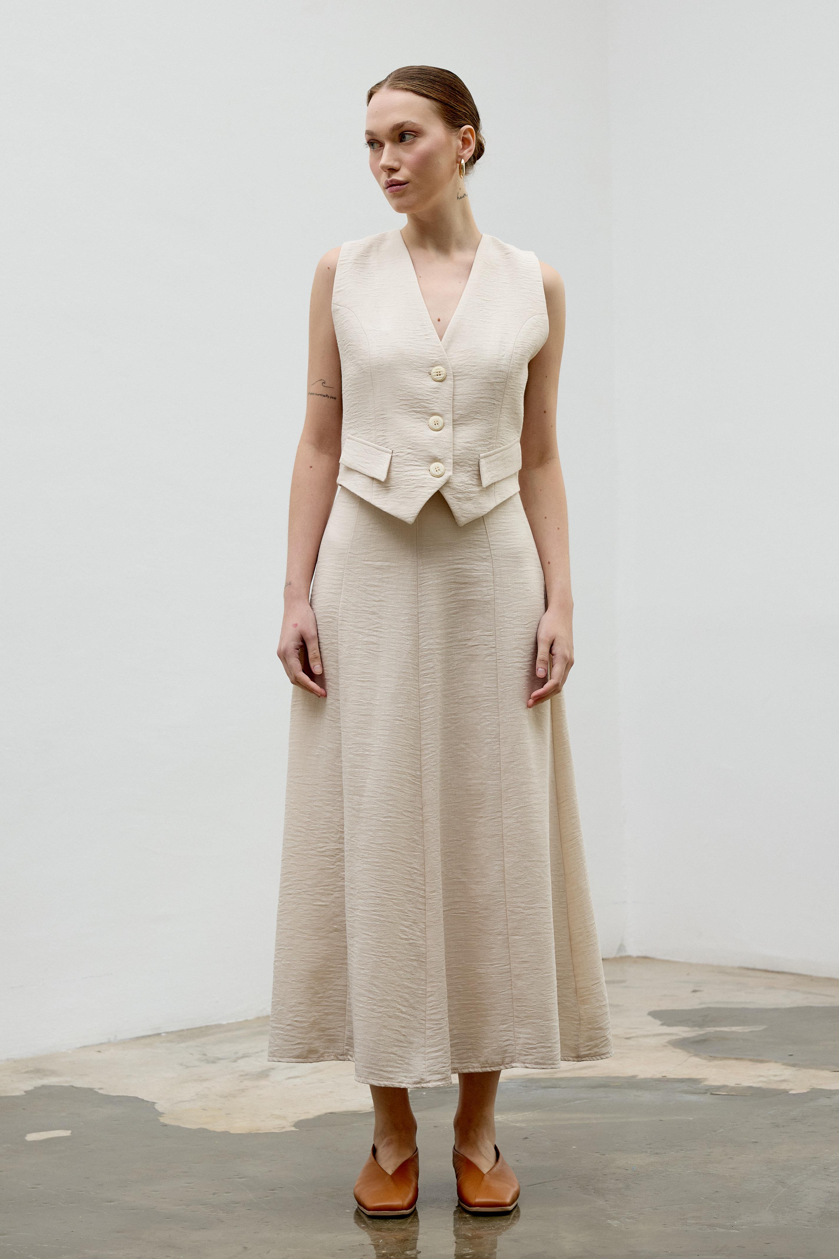 Zamansız şıklığın ve doğal dokunun buluştuğu özel bir parça. Keten Siena etek, hafif ve nefes alan yapısıyla gün boyu konfor sunar. Minimal tasarımı ve sade çizgileriyle hem günlük hem de şık kombinlerde kolayca kullanılabilir. Ketenin doğal dokusu eteğe özgün bir karakter ve zarif bir duruş kazandırır. Her mevsim kullanılabilecek, gardırobunuzun vazgeçilmez zamansız parçalarından biridir.